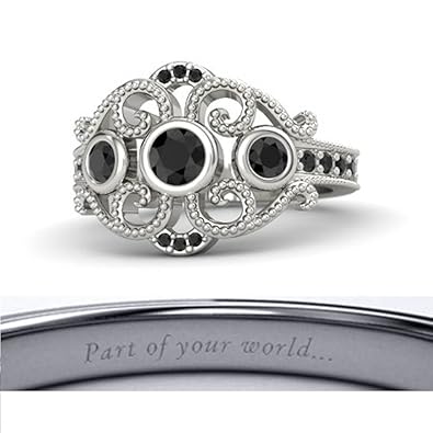 Elegant Miligrain 14k White Gold Plated Black Diamond Disney