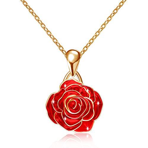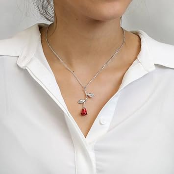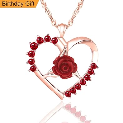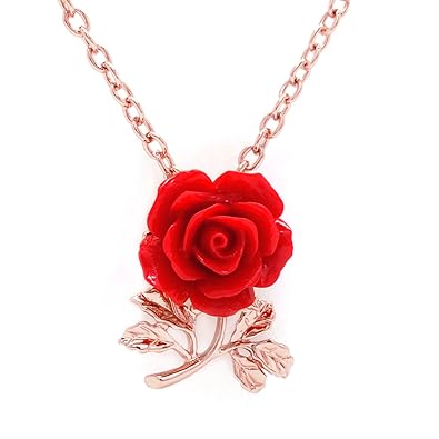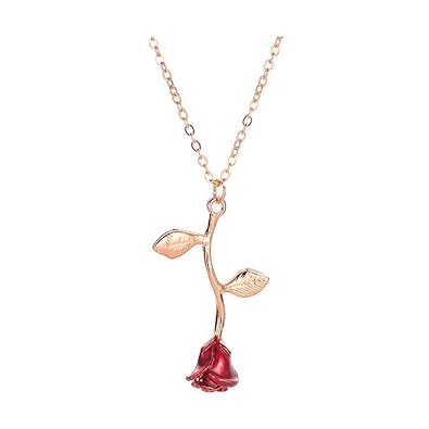 Hzew Red Rose Pendant Necklace Valentine S Day Rose Necklaces Gift For Lover Women