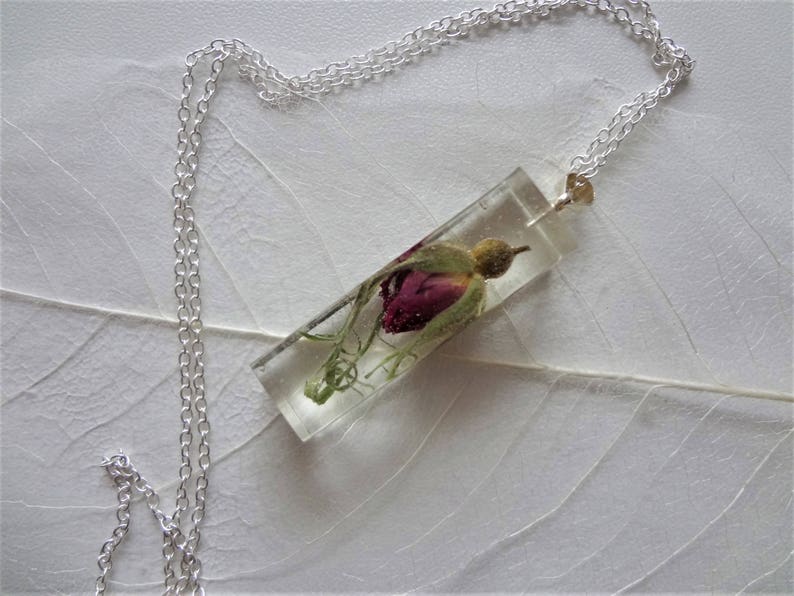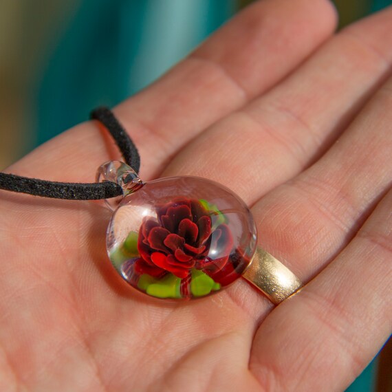 Red Rose Real Flower Pendant Necklace Boho Jewels Love Rose Flower Nature Lovers Gift Unique Gifts Resin Crystal Flower Floral Pendant Plant