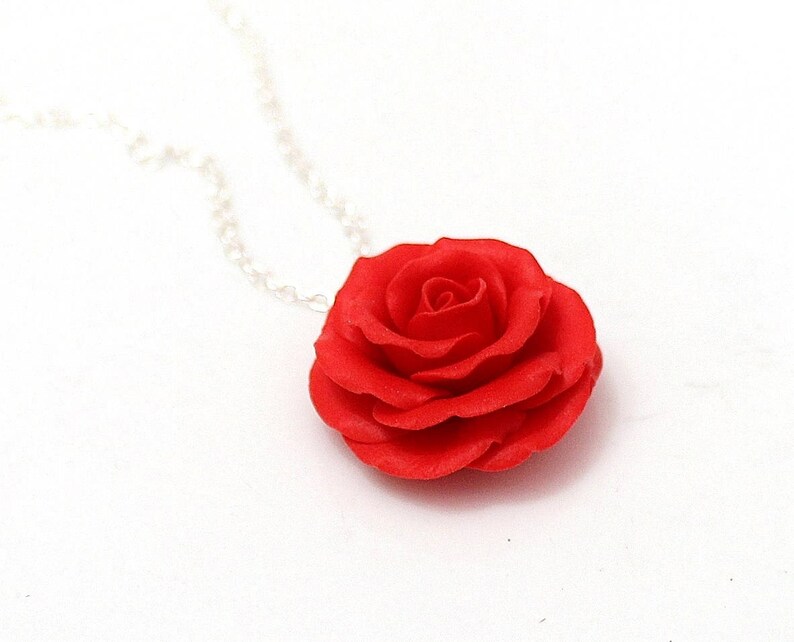 Red Rose Necklace Rose Pendant Rose Charm Valentine Love Necklace Bridesmaid Necklace Flower Girl Jewelry Red Bridesmaid Jewelry