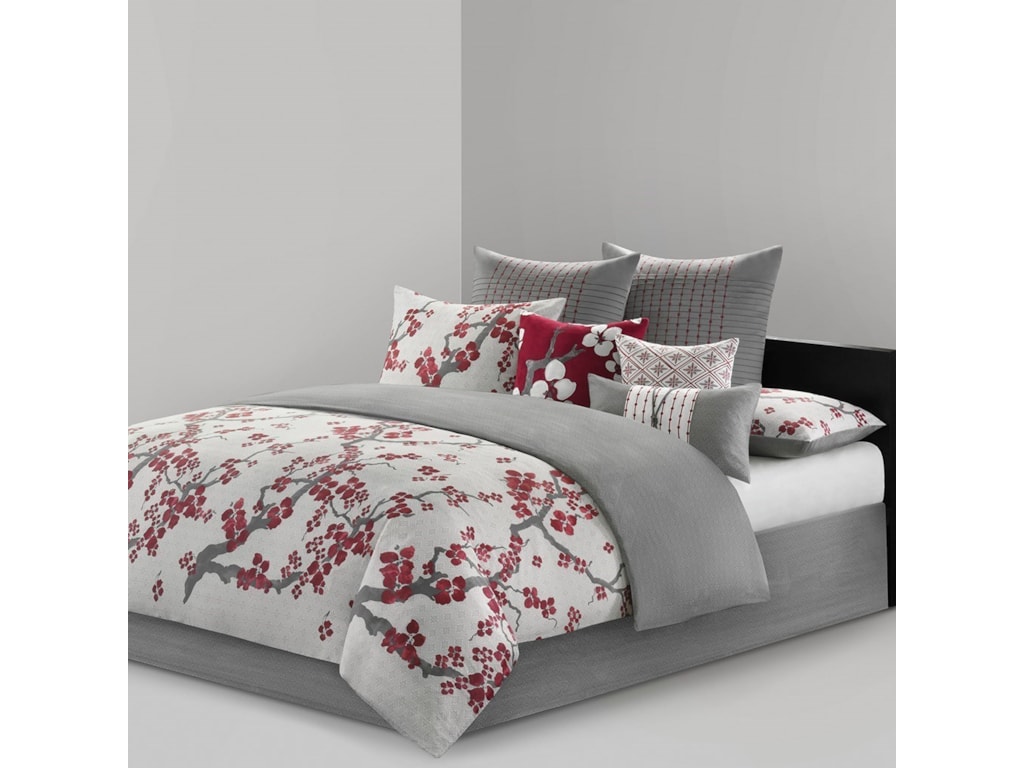 Amazon Com N Natori Cherry Blossom Duvet Cover Queen Size Red